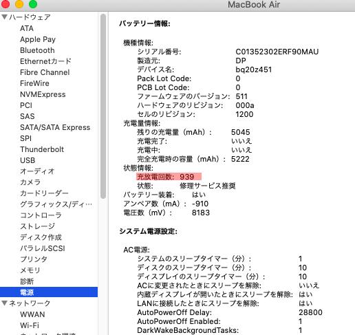Mac のバッテリーの充電回数ってどれぐらい???調べてみました。