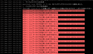 エラー: Zipアーカイブが返すステータス: Write error: Disk quota exceeded