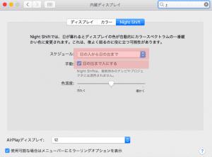 mac OS Sierra 10.12.4以降で提供されている機能で、iPhoneでもios9.3以降で採用されている機能となっています。夜間のブルーライトが体に悪い影響を与えるということでの機能となっています。