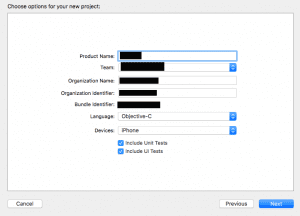 1.Xcodeを起動して、新たにプロジェクトを作ります。
