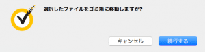 6.「選択したファイルをゴミ箱に…」メッセージが表示されるので「続行する」ボタンを押します。