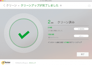 7.クリーン作業が完了すると以下の画面が表示されるので、「完了」ボタンを押します。