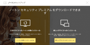 3.インストール方法を選択します。再インストールの場合、「ノートンを再インストールする」(左)を選択します。