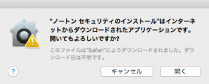 8.「”ノートンセキュリティのインストール”は…」の確認画面が表示されるので、「開く」を選択します。